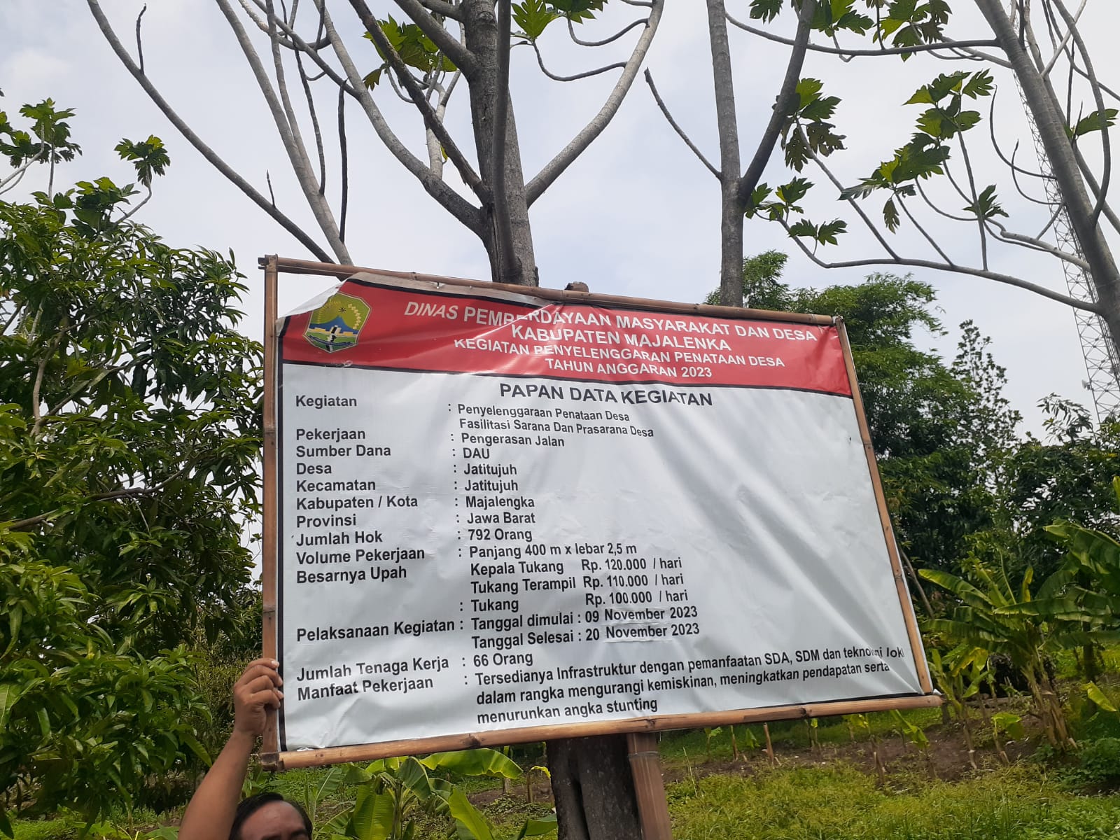“Adapun yang di ambil untuk tahap pertama Senilai 119 juta, pencairan dan pencairan tahap 2 semuanya diserahkan kepada pihak Desa, sementara itu untuk pekerja per hari ada 30 orang pekerjaannya selesai dalam waktu 12 hari.